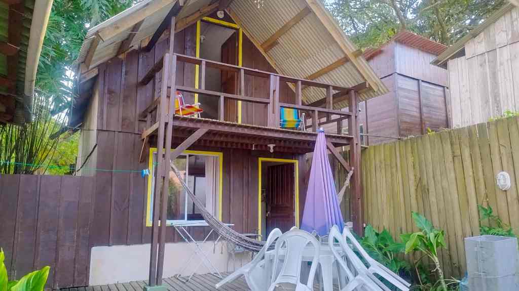 O chalé dispõe de wi-fi, TV, cozinha interna com utensílios, ventiladores, roupas de cama, banheiro privativo, e área externa com churrasqueira e guarda-sol.